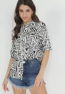 Biało-Czarna Koszula z Wiskozy w Fantazyjny Print Valyna