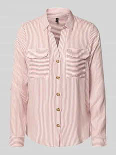Bluzka koszulowa damska Vero Moda;Model ‘Bumpy’;Efekt: Dwukolorowa;Krój: Krój regular fit ;Kształt kołnierza: Kołnierzyk koszulowy;Detale: Partia pleców z plisą;Wzór: