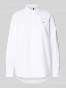 Bluzka koszulowa damska Tommy Hilfiger;Efekt: jednolity kolor;Krój: Krój relaxed fit;Kształt kołnierza: Kołnierzyk koszulowy;Aplikacja: Detal z logo;Detale: