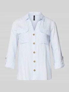 Bluzka koszulowa damska Vero Moda;Model ‘Bumpy’;Efekt: Dwukolorowa;Krój: Krój relaxed fit;Kształt kołnierza: Kołnierzyk koszulowy;Wzór: w paski;Aplikacja: