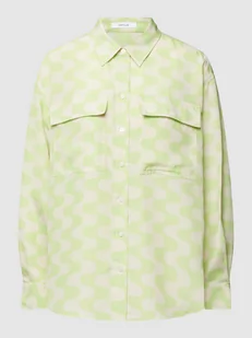 Bluzka koszulowa damska OPUS;Mieszanka materiałów;Prosty krój;Model ‘Fridami’;Wzór graficzny;Kołnierzyk koszulowy;Nakładane kieszenie na piersiach;Listwa guzikowa na całej długości;Długość tyłu w rozmiarze 36: 70 cm;Długość rękawa w rozmiarze 36: 56 cm