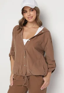 Jasnobrązowa Bawełniana Koszula z Kapturem Ściągana w Pasie Felewen