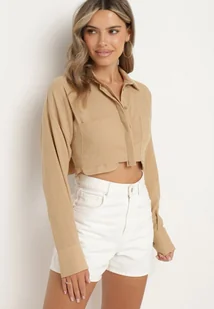 Beżowa Klasyczna Koszula o Krótkim Kroju na Guziki Tiamavoin
