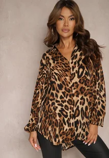 Brązowo-Beżowa Panterkowa Koszula Rękawy Zakończone Gumkami Verinae