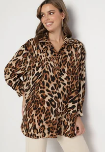 Brązowo-Czarna Koszula o Kroju Oversize w Panterkę Sihanis