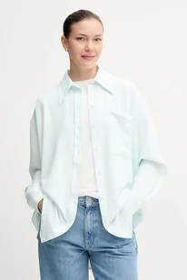 Calvin Klein Jeans koszula damska kolor turkusowy relaxed z kołnierzykiem klasycznym LV044C148G