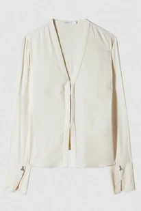 Camicia fluida della linea "ESSENTIAL" in crêpe di viscosa, dal fit morbido e rilassato, con profondo scollo a V e chiusura frontale con gancetti stile lingerie. Maniche lunghe con logo Fly sui polsi, spalle regolari. Composizione: 100% viscosa. Cura: lavare a mano o delicatamente a secco con tetra cloroetilene.