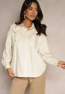 Ciemnobeżowa Koszula z Bawełny Ozdobiona Kwiatami 3D Dorelin