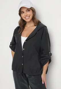 Ciemnoszara Bawełniana Koszula z Kapturem i Podwijanymi Rękawami Silresia