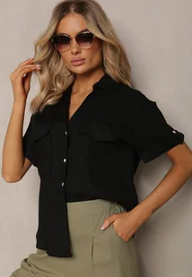 Czarna Koszula Bawełniana z Lnem Zapinana na Guziki Surveni