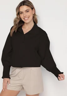 Czarna Bawełniana Koszula z Marszczonymi Rękawami i Falbankami Tanandoria