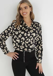 Czarna Koszula w Cętki z Kołnierzykiem Emeili