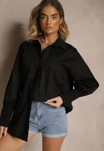 Czarna Bawełniana Koszula z Marszczonymi Rękawami i Falbankami Tanandoria