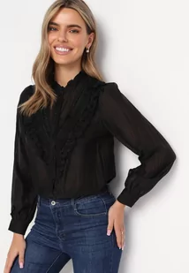 Czarna Koszula na Guziki z Ozdobną Koronką Raneem