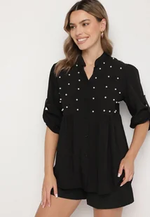 Czarna Koszula z Wiskozą Ozdobiona Perełkami Tanavitia
