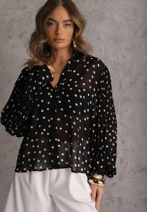 Czarna Bawełniano-Wiskozowa Koszula w Groszki z Plisowanymi Rękawami Ronan