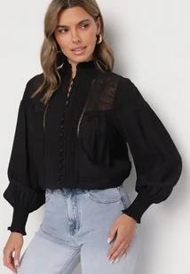 Czarna Wiskozowa Koszula z Koronkowymi Wstawkami Ulirine