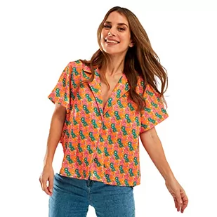 Damska koszula bez prasowania, odporna na zagniecenia, odpycha plamy, bez smug potu, antyzapachowa, oddychająca, dekolt w serek, elegancka damska, Pomarańczowy, Różowy I Zielony Nadru, XL
