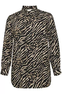 Damska koszula Kaffe Curve Plus Size Button Up Printed Luźny krój długie rękawy, Czarny i brązowy zwierzęcy nadruk, 44/du?y rozmiar