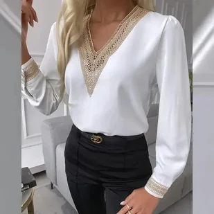 Damska koszula z ażurowym zdobieniem - Biały L