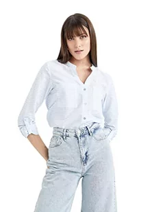 DeFacto Koszula damska z tkaniny bawełnianej z długimi rękawami, niebieski, XXL