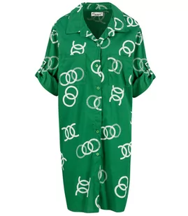 Długa luźna koszula w uniwersalnych kolorach w delikatny, elegancki print Model z klasycznym kołnierzykiem typu Kent Zapinana na guziki Rękaw 3/4 z możliwośc...