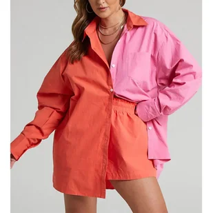Dwukolorowa damska koszula oversize - Pomarańczowo-różowy