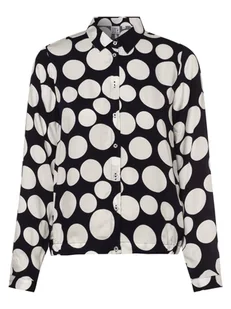 TEMU Elegancka Bluzka z Wysokim Kołnierzem w Kolorowe B i Bufiaste Rękawy - Szykowny Czarno-Biały Wzór, Długie Rękawy, Koszula na Guziki dla Kobiet,
