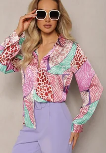 Fuksjowa Klasyczna Koszula z Kolorowym Abstrakcyjnym Printem Ripeata - Renee