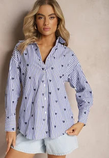 Granatowa Koszula z Bawełny w Paski z Wyhaftowanymi Serduszkami Aleriesa