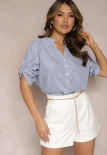 Granatowo-Biała Koszula z Bawełny o Luźnym Kroju w Paski z Guziczkami Konolla
