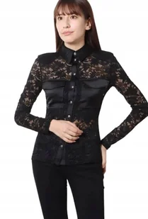 Guess Czarna Koronkowa Bluzka z Kołnierzykiem i Zapięciem na Guziki XS Gxb