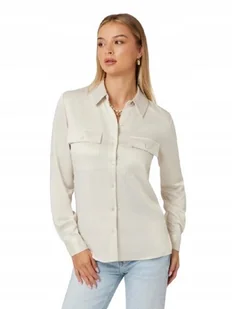 Guess Klasyczna Ecru Koszula z Długim Rękawem i Kieszeniami L Gna - GUESS