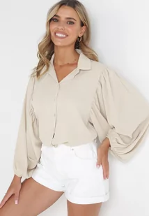 Jasnobeżowa Koszula z Szerokimi Plisowanymi Rękawami Anihadi