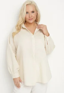 Jasnobeżowa Koszula z Wiskozą Lnem i Regulowanymi Rękawami Edianila