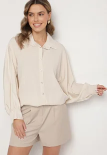 Jasnobeżowa Koszula z Wiskozą o Kroju Nietoperza Sonaretia