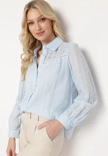 Jasnoniebieska Bawełniana Koszula Ażurowa Tinoda
