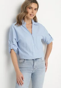 Jasnoniebieska Koszula Bawełniana w Delikatne Prążki Lissse
