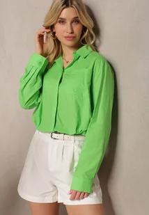 Jasnozielona Koszula z Bawełny o Krótkim Kroju Ozdobiona Kieszonką i Troczkiem na Guziki Efille