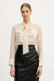 Joop! koszula damska kolor beżowy regular z wiązanym dekoltem 30100464