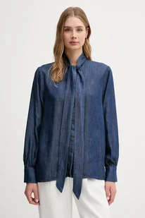 Joop! koszula jeansowa damska kolor granatowy relaxed z wiązanym dekoltem 30047820
