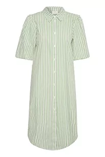 KAFFE damska koszula dress Button Up krótki rękaw, biała/zielona paski, 36