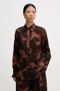Karl Lagerfeld koszula damska kolor brązowy regular z kołnierzykiem klasycznym B1W11009