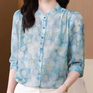 Koszula damska bez kołnierzyka - Niebieski