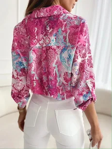 Koszula damska w kolorowe wzory - Jasnoróżowy