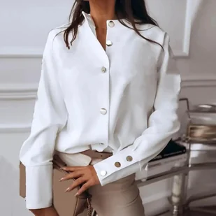 Koszula damska z ozdobnymi guzikami - L Biały