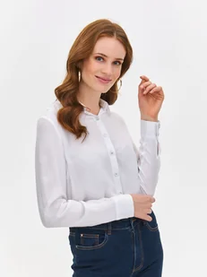 Koszula damska Top Secret z klasycznym kołnierzykiem. Elegancka koszula damska o prostym kroju z długim rękawem zakończonym szerokim mankietem. Jest ona zapinana z przodu na guziki z błyszczących kryształów i ma klasyczny kołnierzyk, będąc wykonaną z dobrej jakościowo oraz przyjemnej w dotyku tkaniny wiskozowej. Idealnie wzbogaca ona praktycznie każdą kobiecą stylizację do pracy, jak i również podczas uroczystej kolacji. Jest ona szczególnie polecana kobietom ceniącym sobie klasyczny styl oraz ponadczasową elegancję. Koszula dostępna w kolorze białym SKL3461BI. Modelka ma 177 cm wzrostu i prezentuje rozmiar 34.