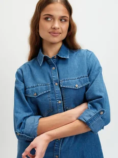 Ta stylowa koszula jeansowa w kolorze niebieskim to doskonały wybór dla miłośników klasycznej mody z nutą nowoczesności. Wykonana z wysokiej jakości materiałów, co zapewnia jej trwałość oraz komfort noszenia. Dzięki uniwersalnemu designowi idealnie sprawdzi się zarówno w casualowych, jak i bardziej formalnych stylizacjach. Koszula posiada klasyczny kołnierzyk oraz praktyczne kieszenie na piersi, dodające jej charakteru. Ten model to modny i wygodny element garderoby, który z pewnością stanie się ulubioną częścią Twoich codziennych outfitów.
