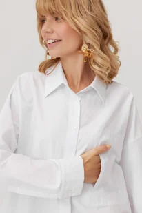 Sprawdzi się jako luźna koszula do pracy i baza do casualowych stylizacji na codzień tkanina bawełniana oversizowy fason kolor - czysta biel Skład: 76% bawełna, 22% poliester, 2% elastan Wzrost modelki 178 cm Wymiary produktu dla rozmiaru 34/36: Długość całkowita - 77 cm Obwód w biuście - 114 cm Obwód w talii - 114 cm Obwód w biodrach - 114 cm Długość rękawa (od kołnierzyka) - 76 cm Każdy kolejny rozmiar zwiększa się o 4 cm w obwodach (nie dotyczy długości całkowitej oraz rękawa). Rozmiar: 34/36, 38/40, 42/44