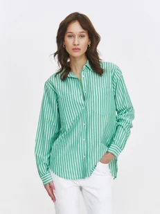 Koszula damska dostępna w kolorze zielonym TSKL25BLK011977X00. Modelka ma 177 cm wzrostu i prezentuje rozmiar 34.